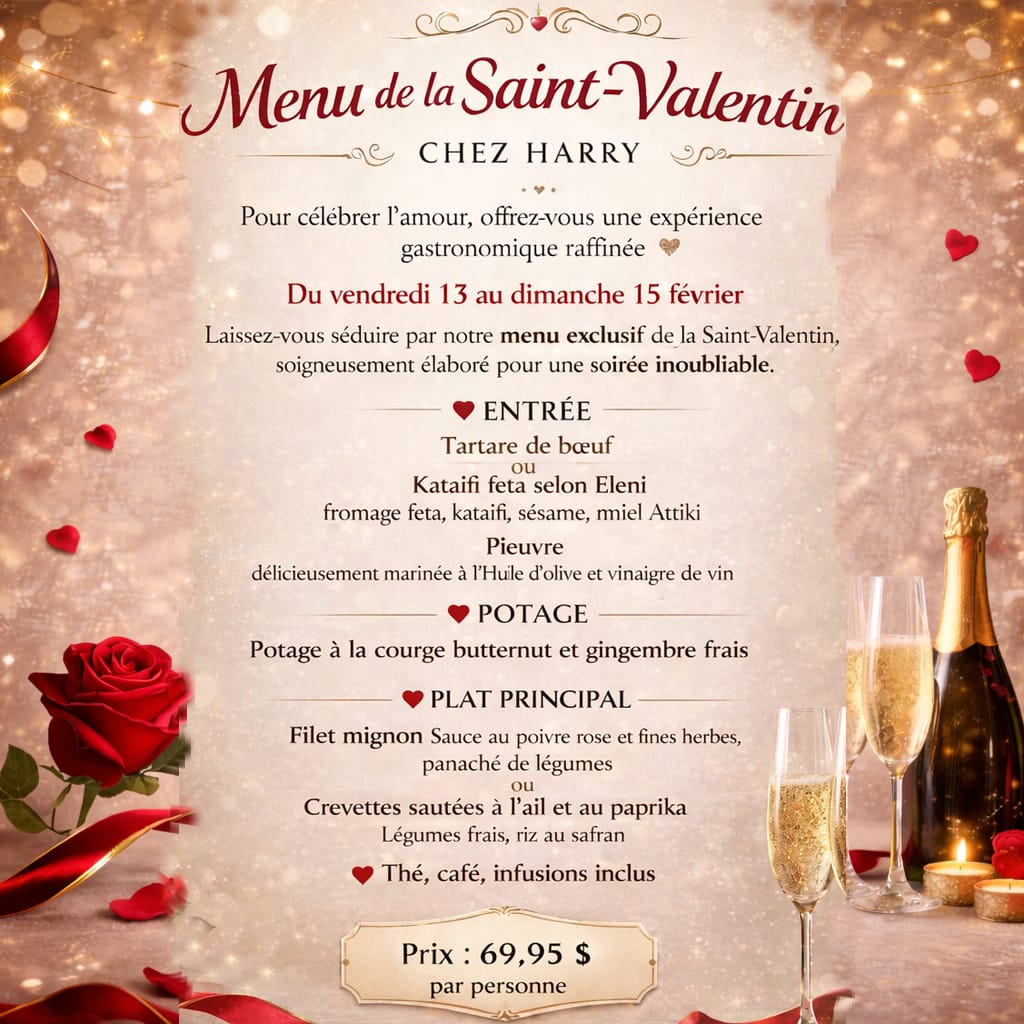 Pour des réservations par téléphone ou pour des groupes de plus de 8 personnes s'il vous plaît appelez au (418) 628-6187 du Mercredi au Dimanche entre 8:00 am et 9:00 pm